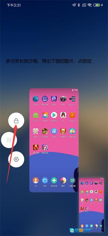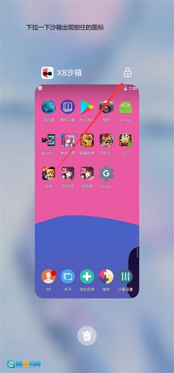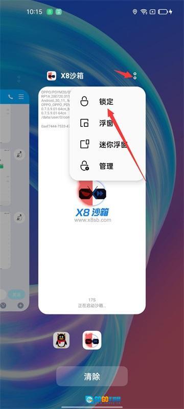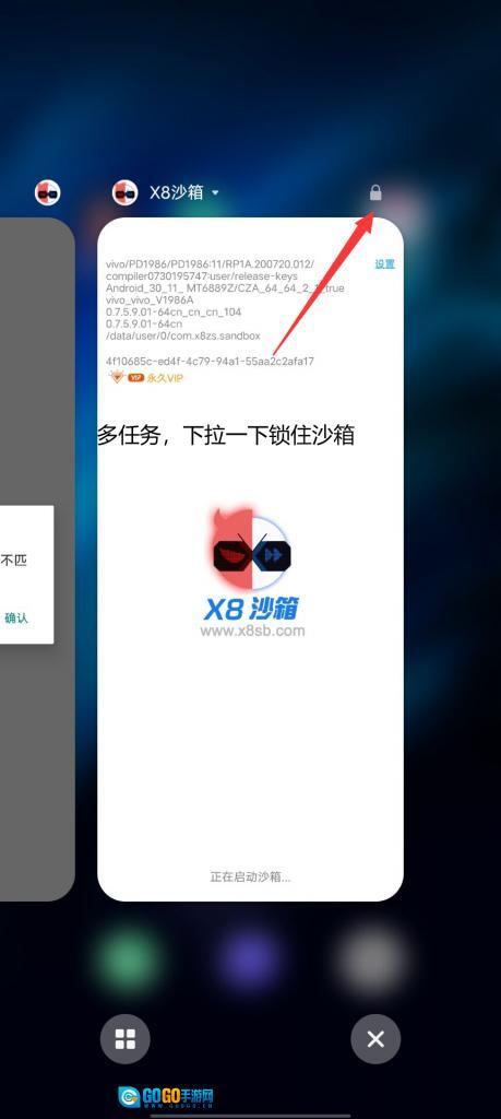 2.后台任务,锁定X8沙箱,即后台多任务界面,下拉一下X8沙箱,出现锁的标志即可。