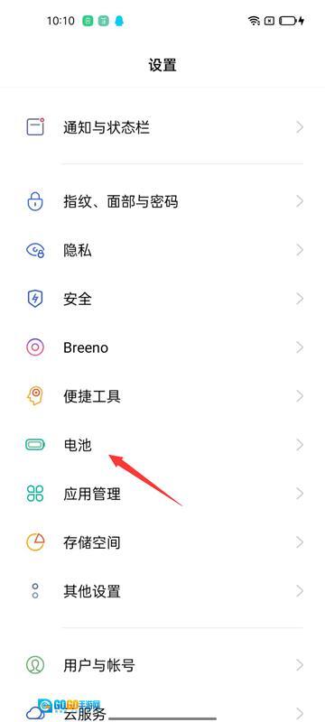 首先进入手机的【设置】->【电池】关掉省电模式