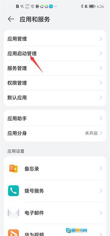 返回设置进入【应用和服务】,进入【应用启动管理】