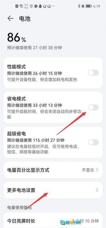 点击【更多电池设置】