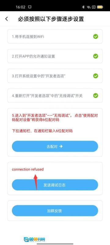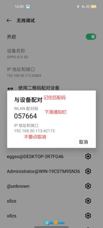 如果显示【配对失败,无线调试服务拒绝连接】