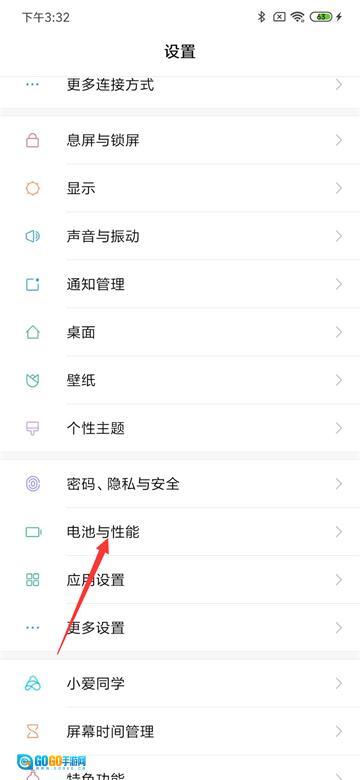 首先进入手机的【设置】->【电池与性能】