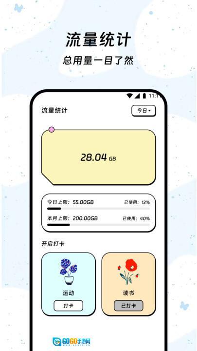 3、功能实用性突出,各项功能均围绕用户日常所需开发,流量管理可有效解决通信成本问题,打卡与运动计时功能能助力用户养成良好习惯,应用场景广泛且高度贴合用户实际需求。