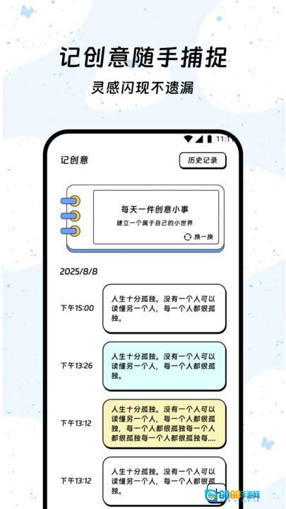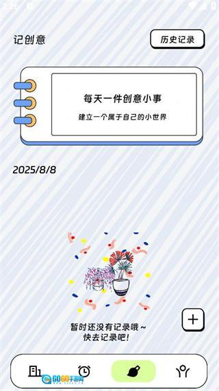 2、打卡记录功能,可支持运动、读书等多种场景的打卡操作,能记录打卡的时间和状态;此外还设有“记创意”模块,方便用户随时记录灵感内容,留存生活与创意的瞬间。