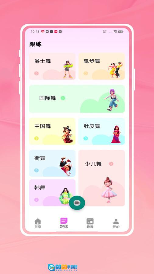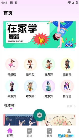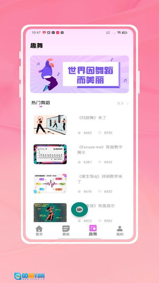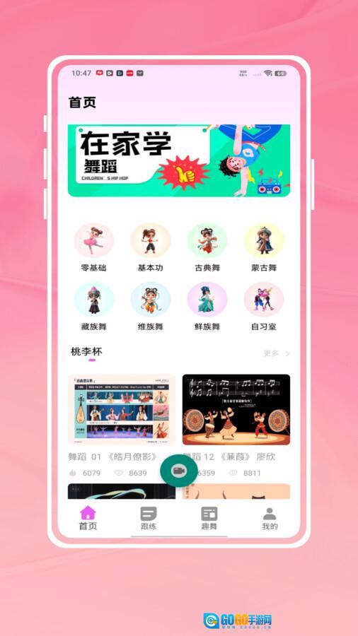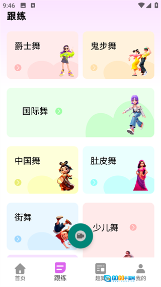 首页下方的导航栏里设有跟练、趣舞等板块,大家可以挑选自己感兴趣的舞蹈来练习。