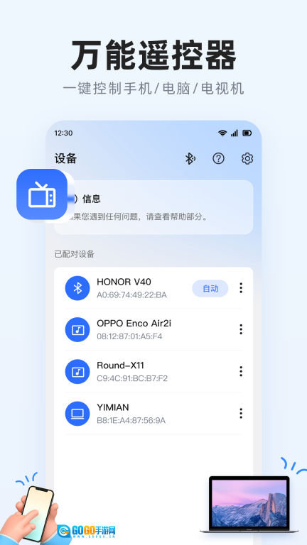 2、可对空调、电视、机顶盒等各类常见家电进行遥控管理。