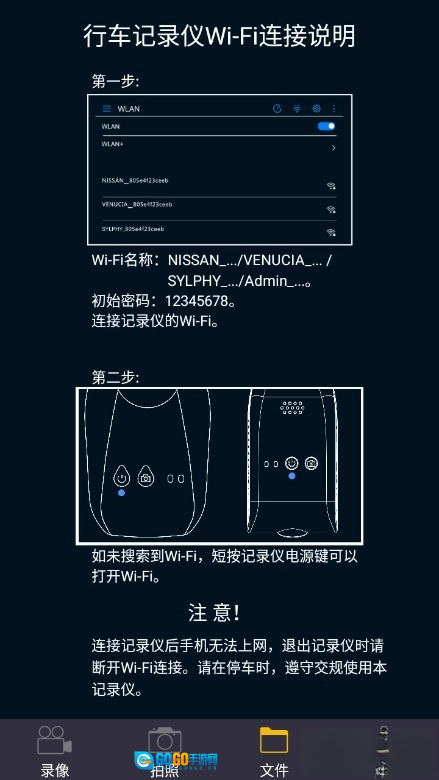 3、这里能看到行车记录仪的WiFi连接说明,用户可以仔细阅读了解。