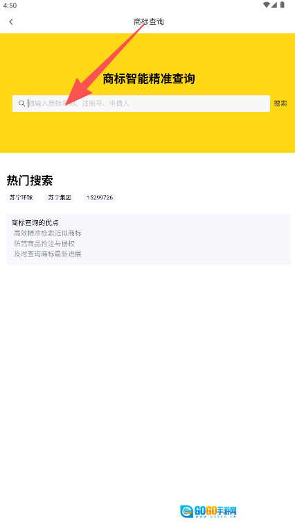 3、于商标查询页面录入商标名称、注册号等相关信息,以获取检索结果。