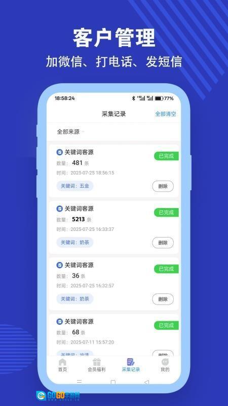 3、整合客户管理与沟通工具,可用于记录客户详细信息、管理跟进进展,并支持一键添加联系人。
