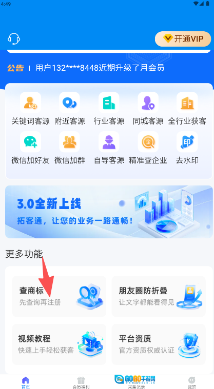 《拓客通》是一款销售获客辅助工具,其核心功能包含客源挖掘、企业查询以及客户触达。该软件具备关键词客源、附近客源、行业客源等多维度的获客途径,能够借助行业关键词迅速锁定目标客户群体。界面把找客源、查企业这类高频操作放在显眼位置,再搭配会员服务体系,助力销售人员高效拓展客户资源,提高业务开发的效率。