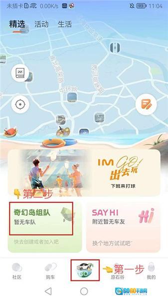 1、进入IM智己汽车主页后,打开“IM GO”功能,即可选择创建奇幻岛队伍。