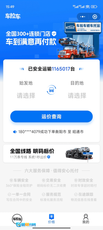 1. 使用车拉车汽车托运试算托运价格。