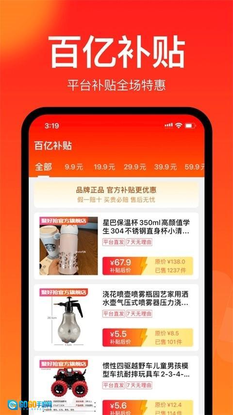 4、【拼多多全场9.9元】