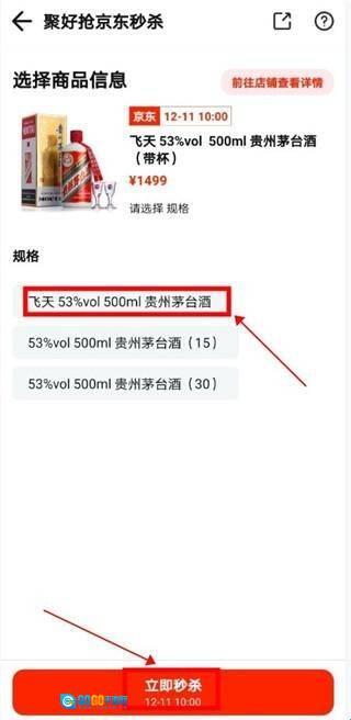 3、进入后,选择产品的规格,点击立即秒杀。