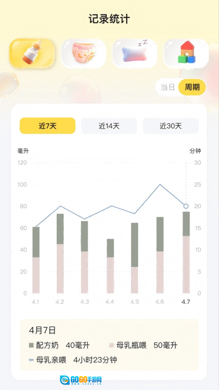 2、家长能够便捷地记录宝宝的日常情况,像喂奶时间、睡眠长度、换尿不湿的频次之类的。