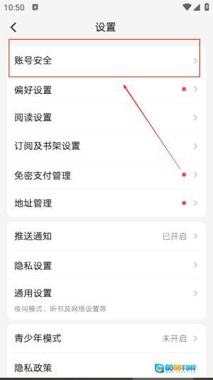 3、选择“账号安全”功能,可查看并管理与账号相关的安全信息。