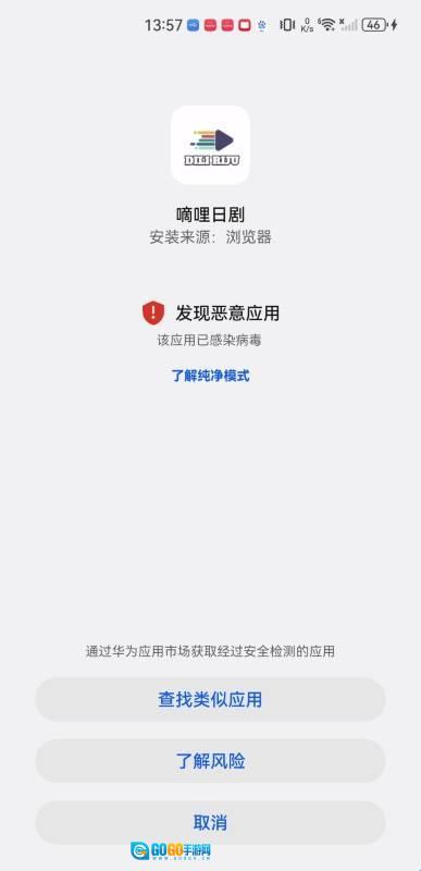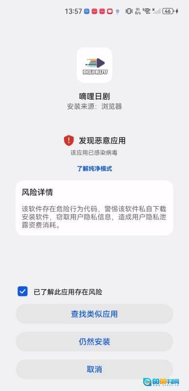 2、系统发现恶意应用,可能是误判,需要点击"了解风险"。
