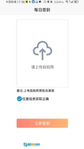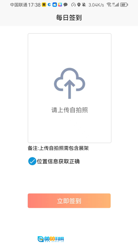 3、进入每日签到界面后,需要上传个人自拍照来完成签到。