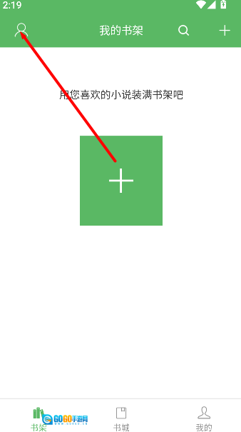 1、启动《搜书神器》应用,点击界面左上角的人物头像图标,即可进入登录界面。