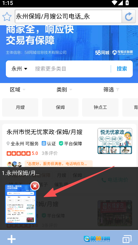 1、打开软件进入搜索页面、选择区域并输入内容搜索。