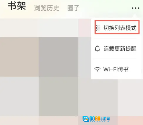 2、接着进入【书架】页面,点击右上角的隐藏菜单按钮。