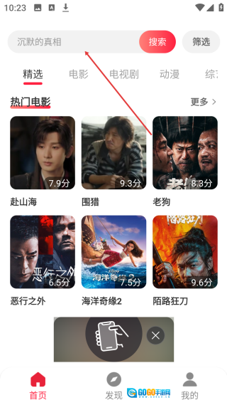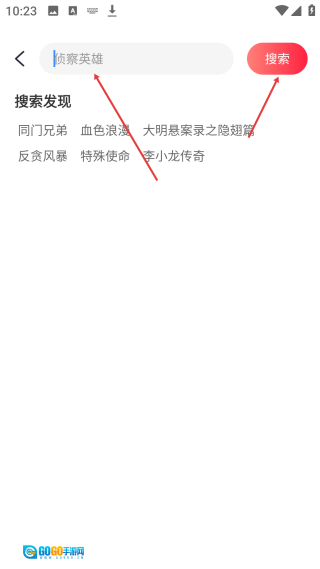 1、进入影视应用首页,点击顶部的【搜索框】,进入搜索输入的操作页面。