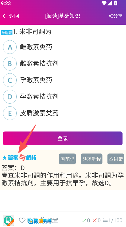 3、具备解析查看功能,在题目页面可查看采分与解析的详细内容。