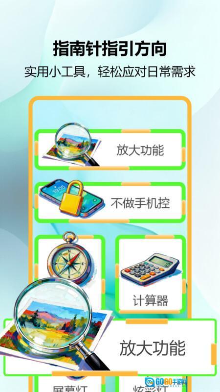 2、指南针与放大镜功能颇具实用性,用户无论是进行户外活动,还是需要查看细节,都能够随时调用这两项功能。