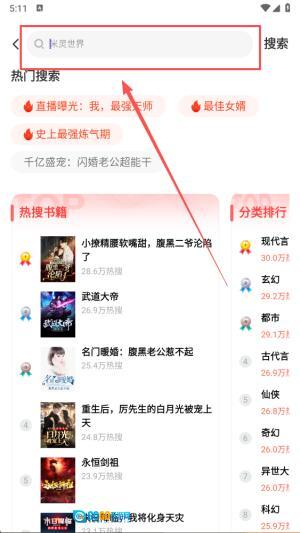 2、点击顶部的搜索框,进入关键词输入页面,以便为后续查找小说做好准备。