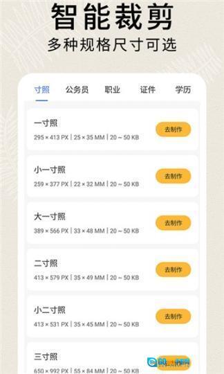 《前程证件照制作》是一款专注于证件照制作的软件,在手机上操作编辑十分便捷。它提供了丰富多样的尺寸规格与背景颜色供用户挑选,能够满足大家在不同场景下的使用需求。这款软件还具备强大的智能抠图功能,只需一键操作就能拍出专业水准的证件照,适配各类场景;其修图效果也相当出色,并且支持自定义添加文字,让你的证件照更添趣味与个性。