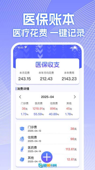 3、对医疗花费进行分类详细记录,医保的收支情况以及消费占比等信息都能清晰呈现,便于查看和管理。