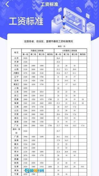 2、点击工资标准,就可以方便去查看各地的工资。