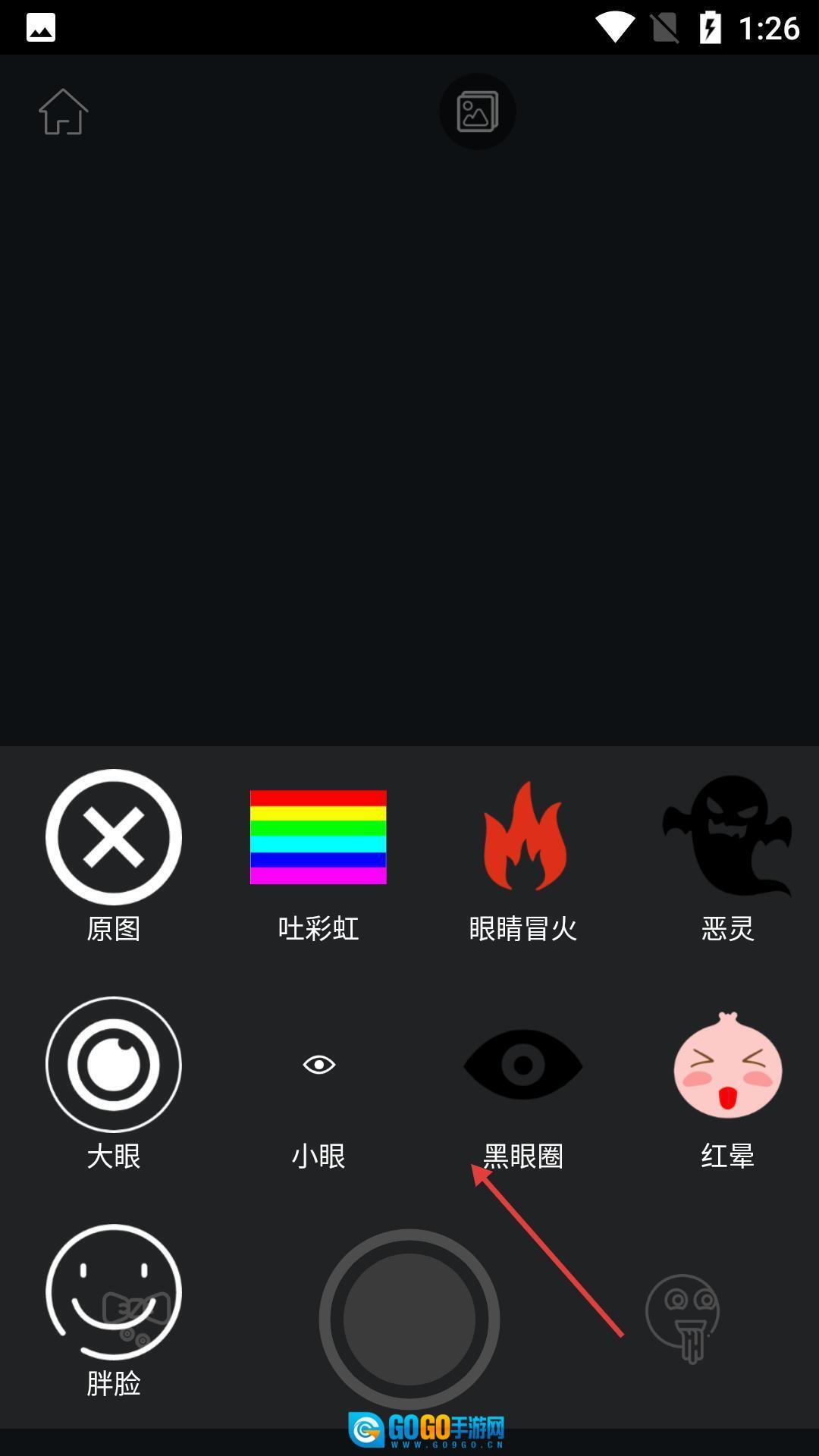 进入相机界面后,底部会显示拍摄按钮和特效选择区域,点击特效图标就能展开特效列表。