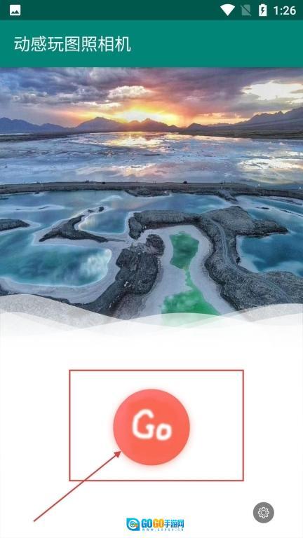 1、当动感玩图照相机的启动页加载完成后,点击页面上的【Go】按钮,即可进入相机功能界面,进而开启拍照与图片编辑功能的使用。