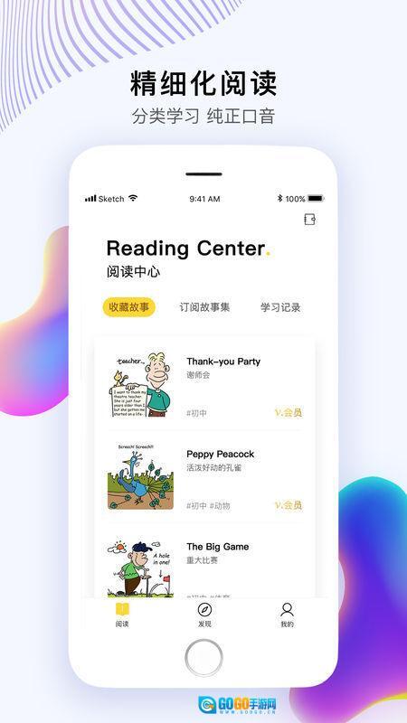 1、阅读中心:在这里,你能浏览收藏的小故事、订阅的故事集,还能实时查看学习记录。另外别忘记还有生词本,帮你在轻松氛围里享受学习的乐趣。