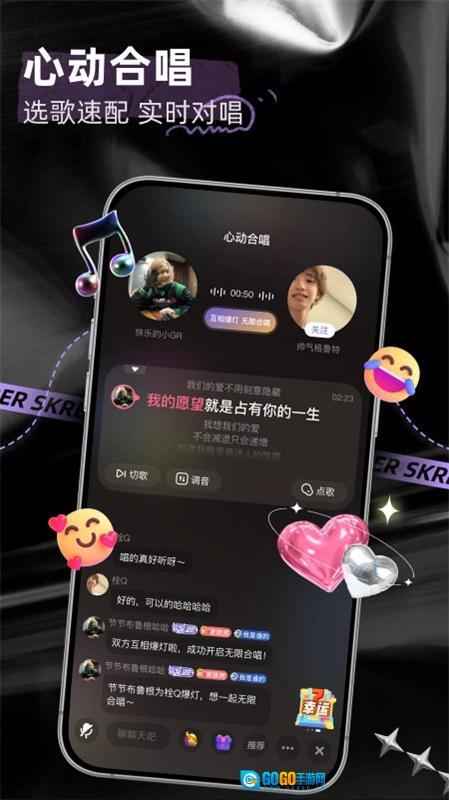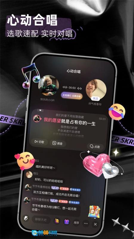 1、【心动合唱】双人连麦实时合唱,系统会依据你的声音特质,为你匹配契合度超高的优质声音搭档,一同K歌互动、畅快聊天