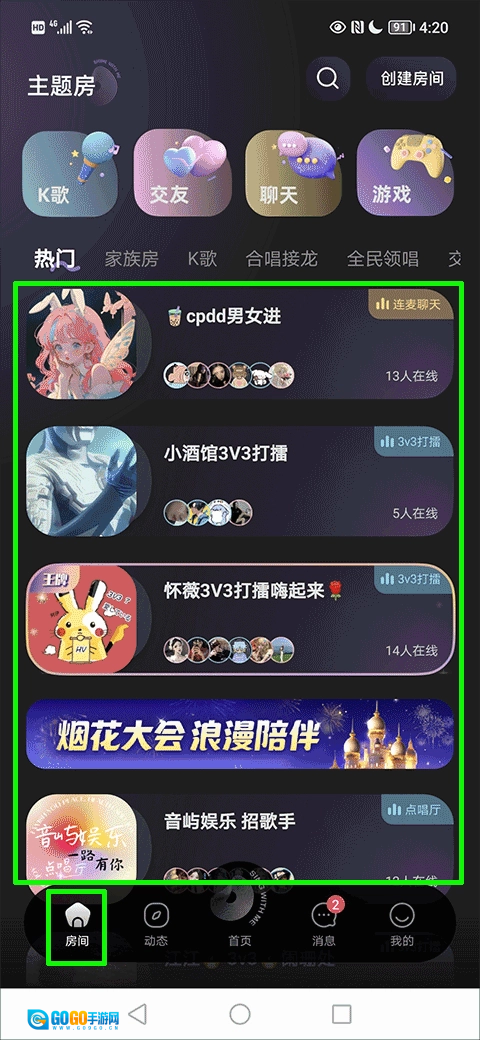 1、打开在本站选好的应用,在房间界面挑选你心仪的主题房间进入;