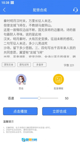 输入文字秒转语音,一键轻松自动化合成。
