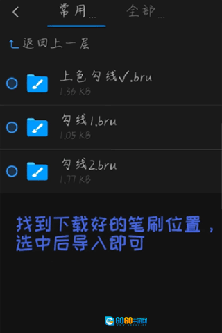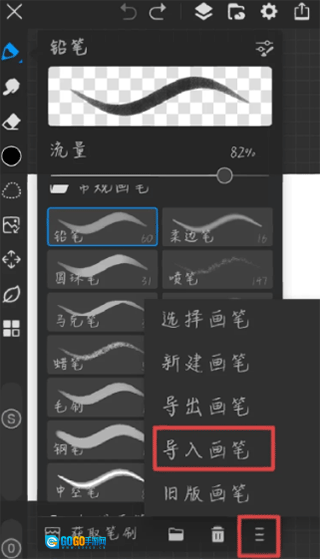 2、点击右下方的三条小杠,选择导入画笔