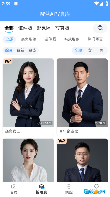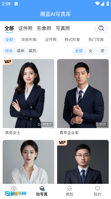 醒蓝AI是一款全新推出的智能拍照相机应用,它以AI技术为核心驱动力,致力于为用户打造更强大、更便捷的证件照制作与生成服务。不管是用于职场的形象照、各类证件所需的标准照片,还是充满创意的AI写真,用户都能从中找到适配的风格模板,轻松快速地生成高分辨率的专业级照片!