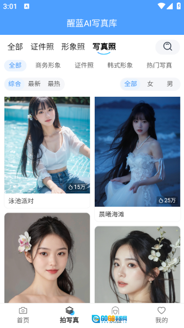 4、点击最下方导航栏拍写真,进入写真分类页