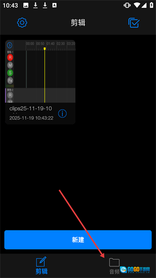 在剪辑界面中,点击右下角的【音频】选项,即可进入音频管理界面。