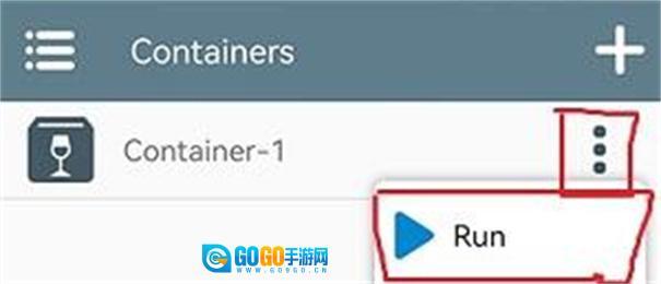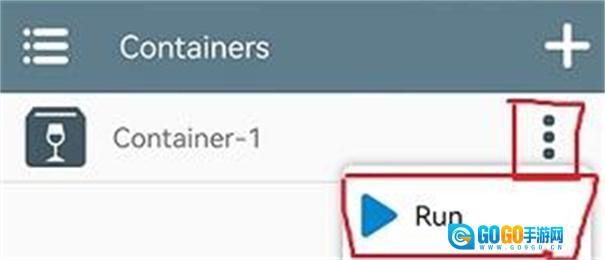 5、找到刚刚创建完成的容器,点击其右侧的“三个点”图标,选择“run”选项来启动运行。