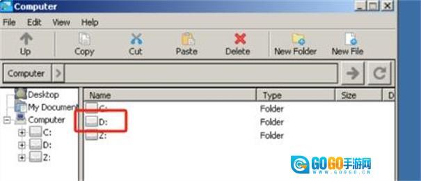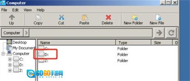 6、进入系统桌面后,通过滑动屏幕来操控鼠标指针,双击打开“D盘”,即可找到我们刚刚导入的游戏文件。