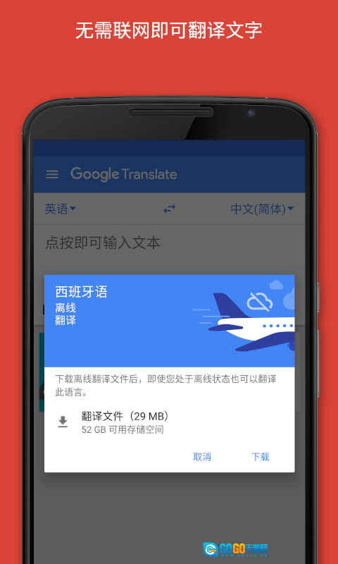 下载离线包后,即使处于没有数据网络、也没有WiFi的环境,同样能迅速得到翻译结果,不需要等待。