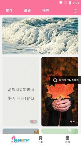 智能识别功能:长按图片就能启动图片识别系统,迅速定位相似风格的优质壁纸资源,进一步拓宽选择范围。