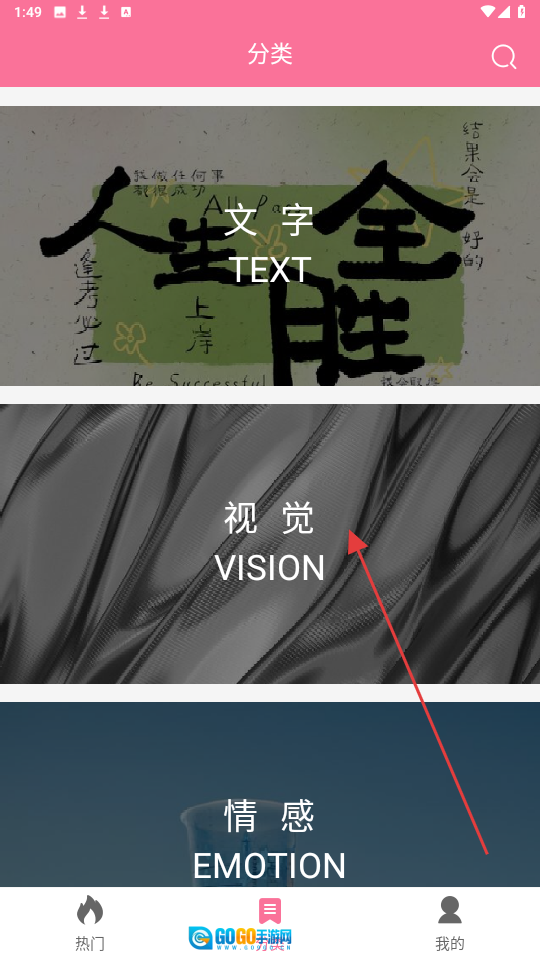 在分类页,点【视觉】分类可查看视觉类壁纸。