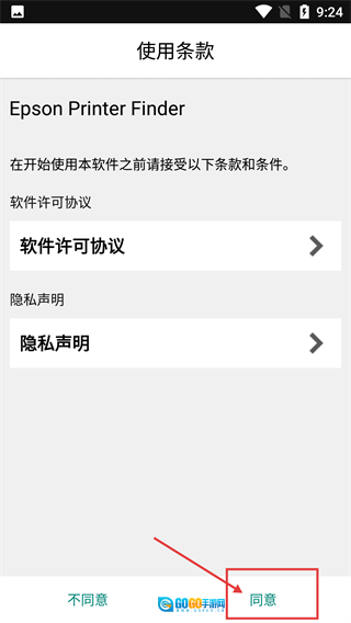 在使用【Epson-Printer-Finder】之前,请先确认相关内容,之后点击页面上的【同意】按钮,方可进行后续操作。