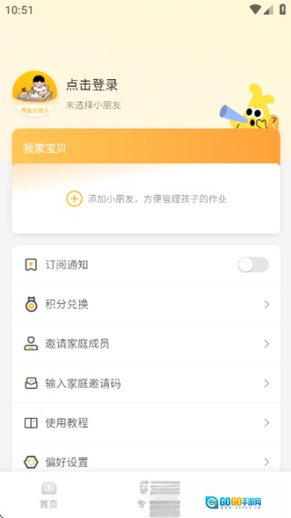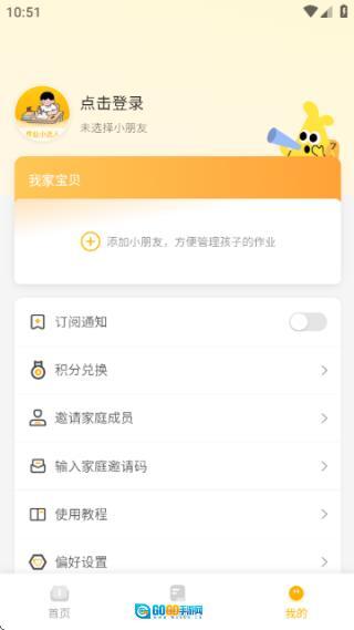 进入“我的 - 我家宝贝”页面添加孩子档案,填写内容包括姓名和学龄阶段,例如“肉肉 - 小学2年级”。