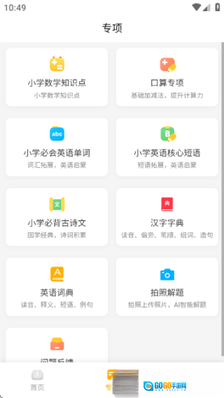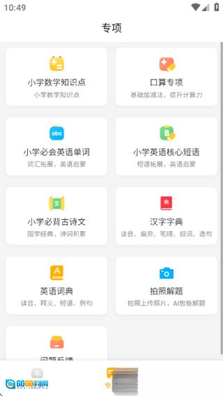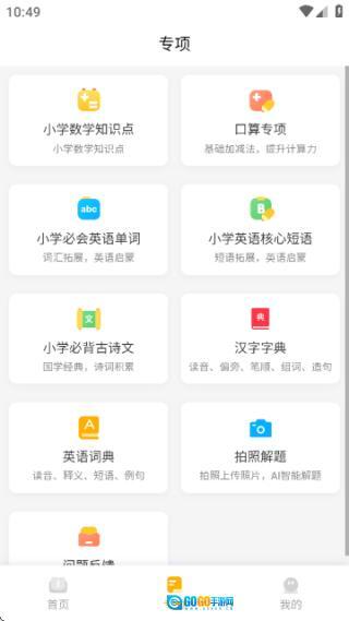 孩子按照作业清单完成各项任务后,在软件里标记“已完成”;要是需要辅导,就能进入“专项”板块,使用“口算练习”“拍照解题”“字典查询”之类的工具。